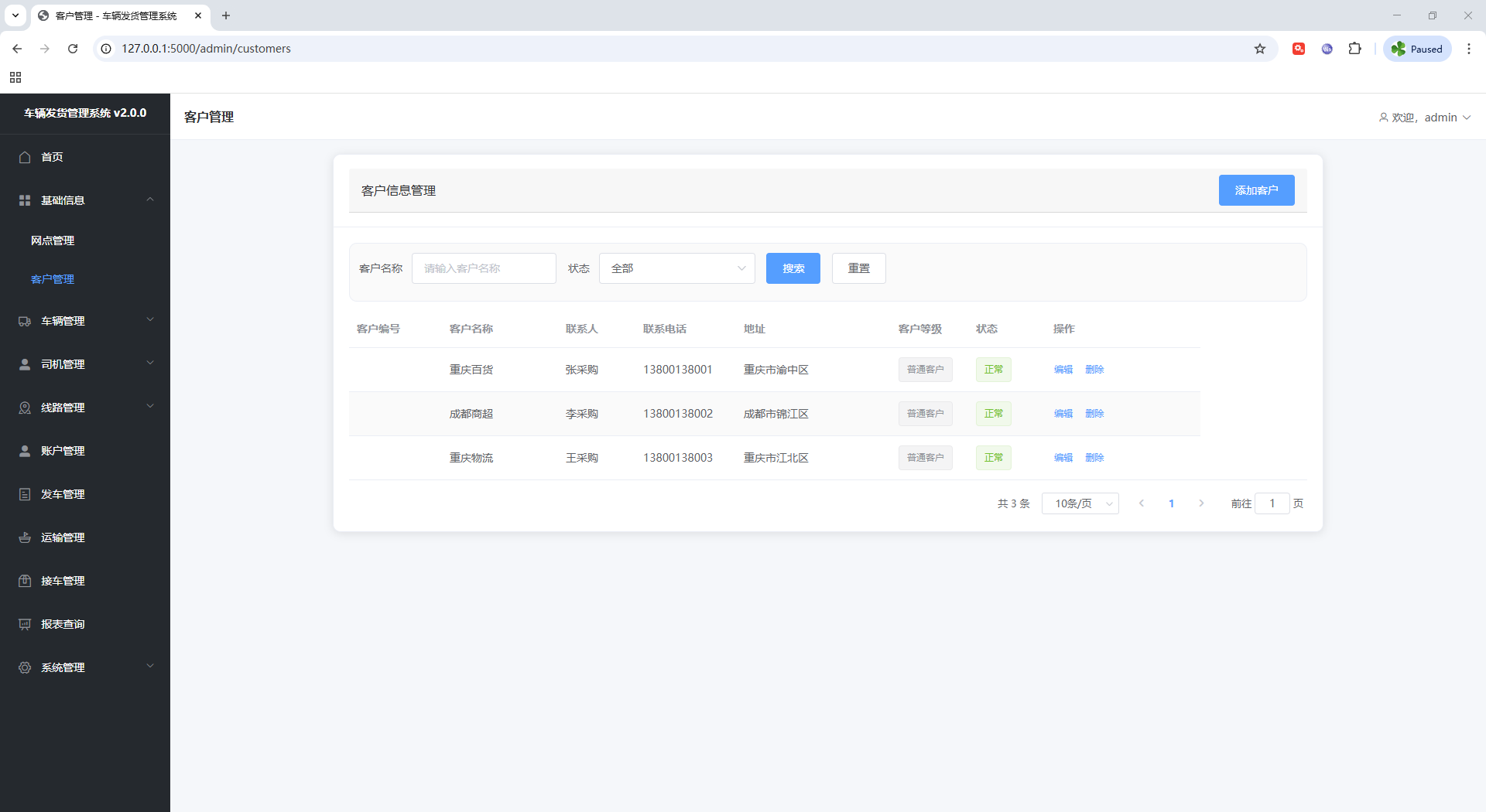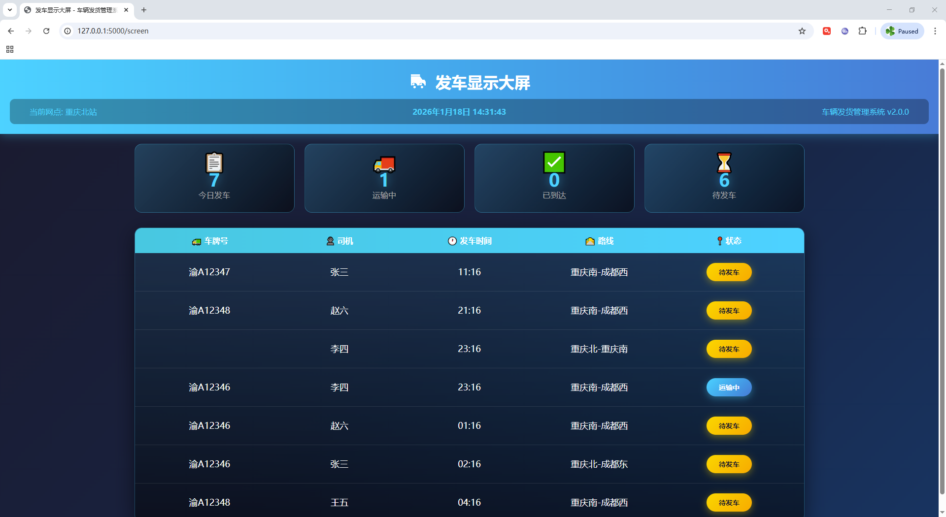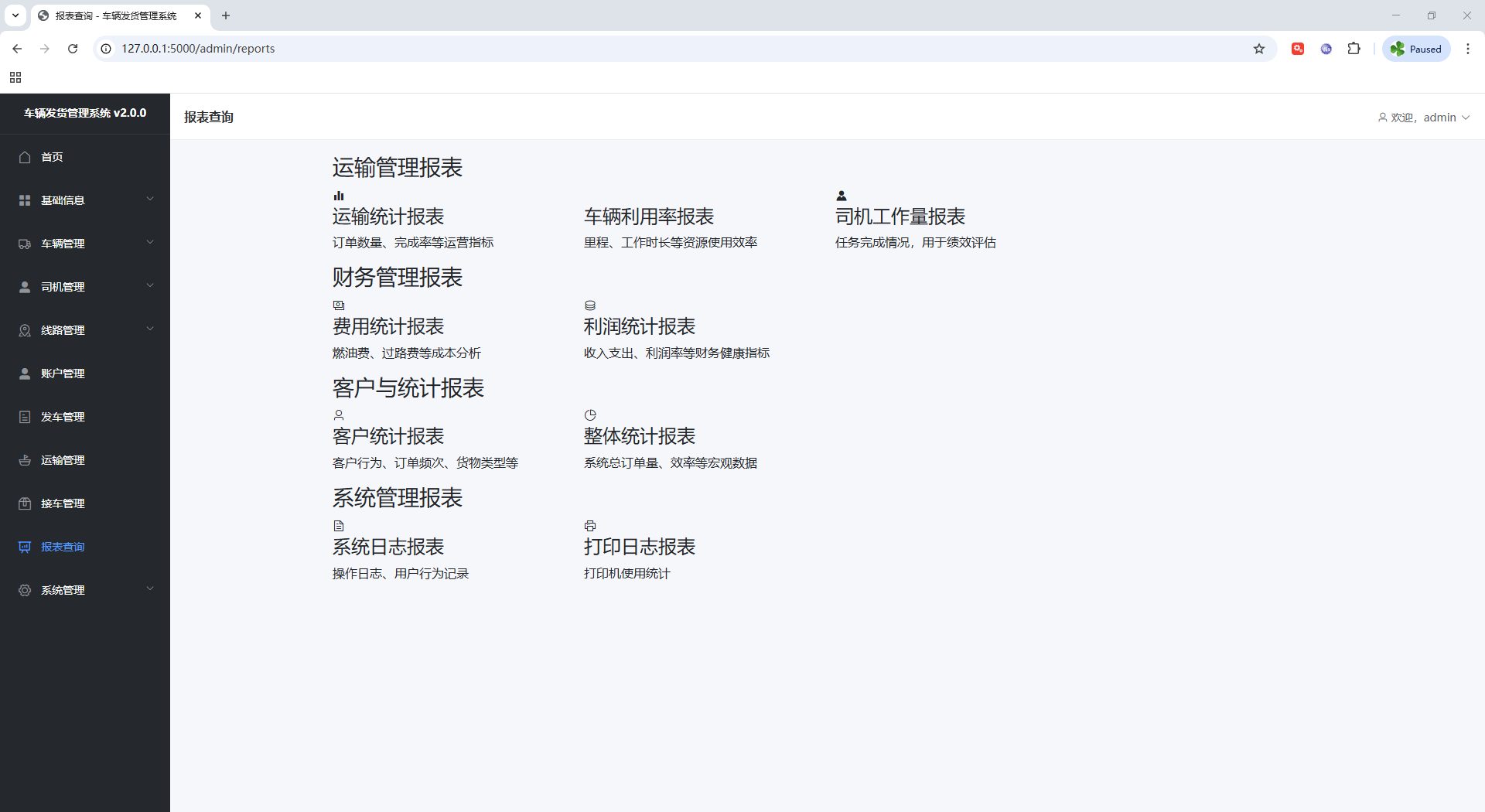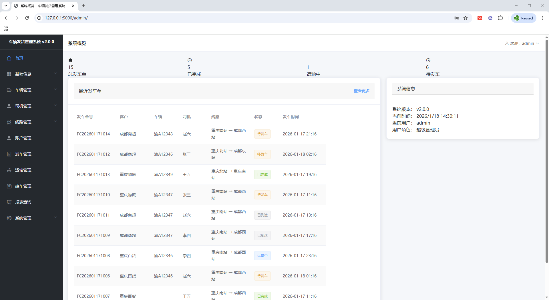 车辆运输管理系统 flask框架