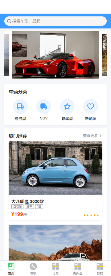 租车店汽车出租APP源码 uni-app前端