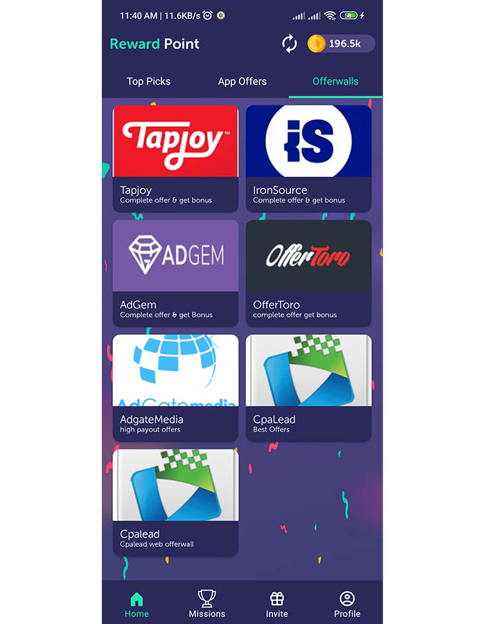 – 集成了多种广告墙SDK(Tapjoy、IronSource、AdGem、OfferToro等)