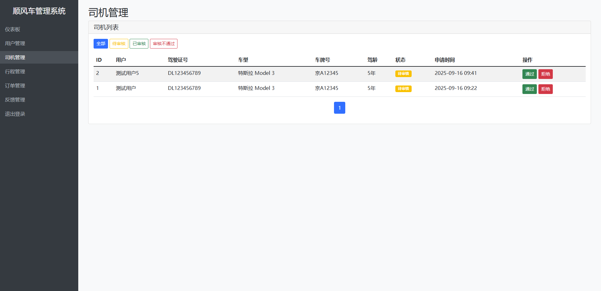 – 司机管理: 司机认证审核、信息管理