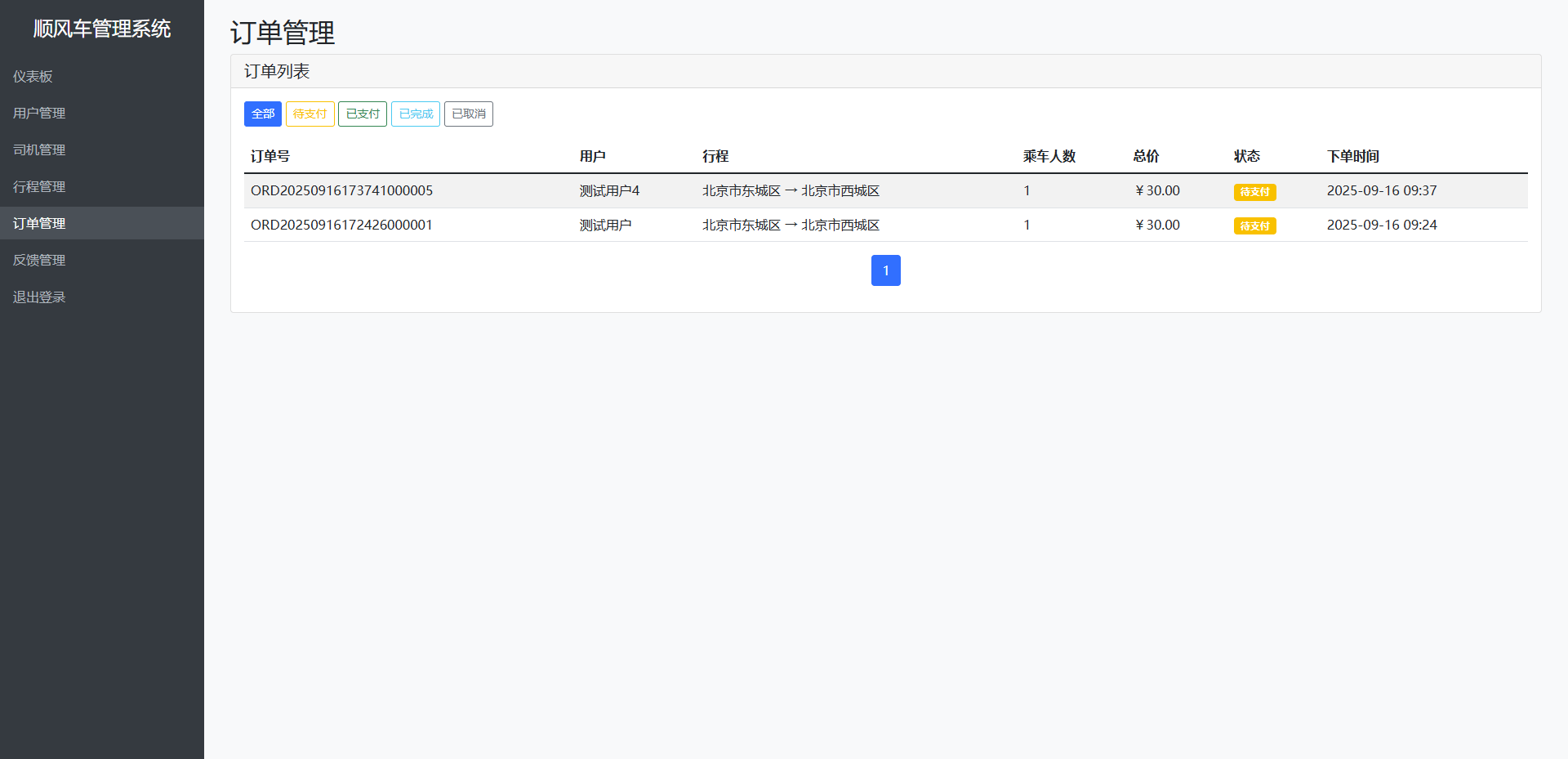 顺风车管理系统 python flask框架