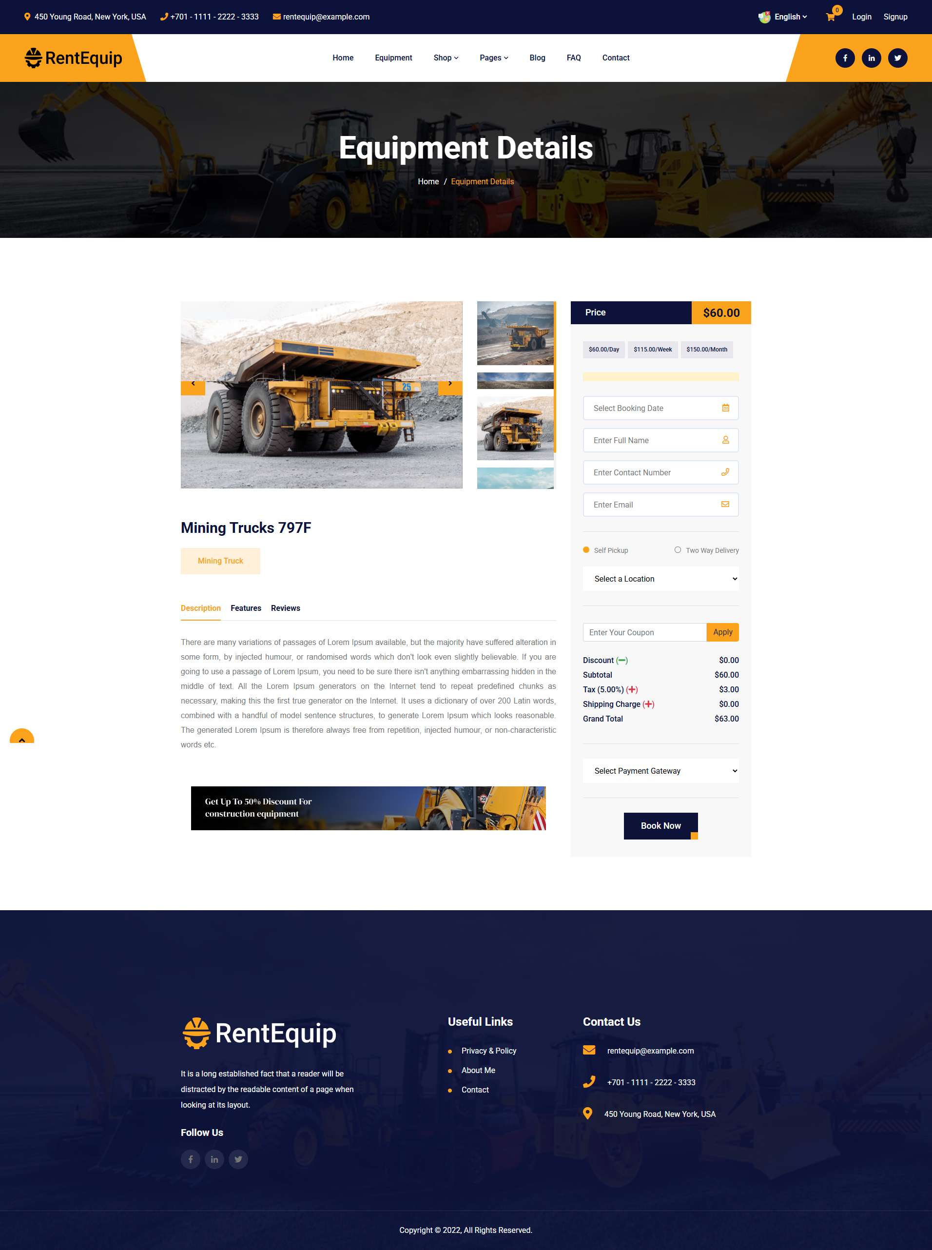 这是一个名为”RentEquip”的工程机械出租平台,是一个基于Laravel框架开发的设备